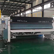 特點: 1.采用了無桿氣缸驅動喂料工位,且設置了四個喂料工位,操作方便,效率高;0 2.采用了 3 套展布機械手,提高了展布機的工作效率; 3.設置了進布濾平毛刷和出布濾平毛刷(選配),提高了布草平整度;